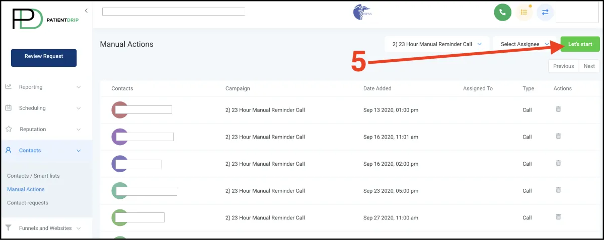 5. Select “Let’s start” and the computer will begin dialing patients scheduled