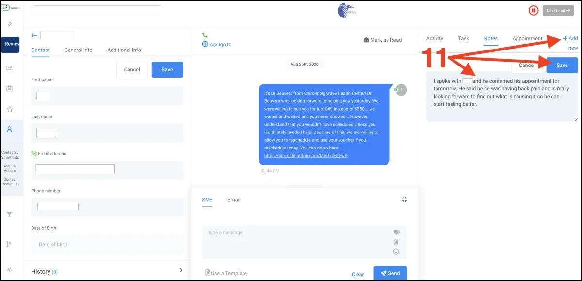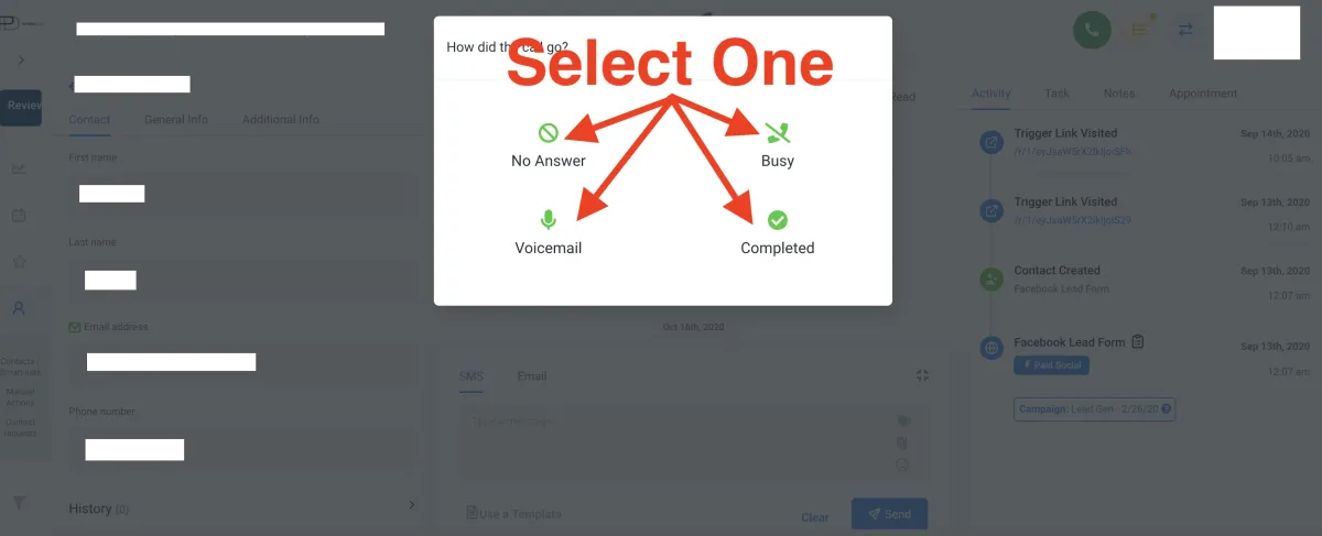 Select there was no answered, you left a voicemail, they were busy, or the call